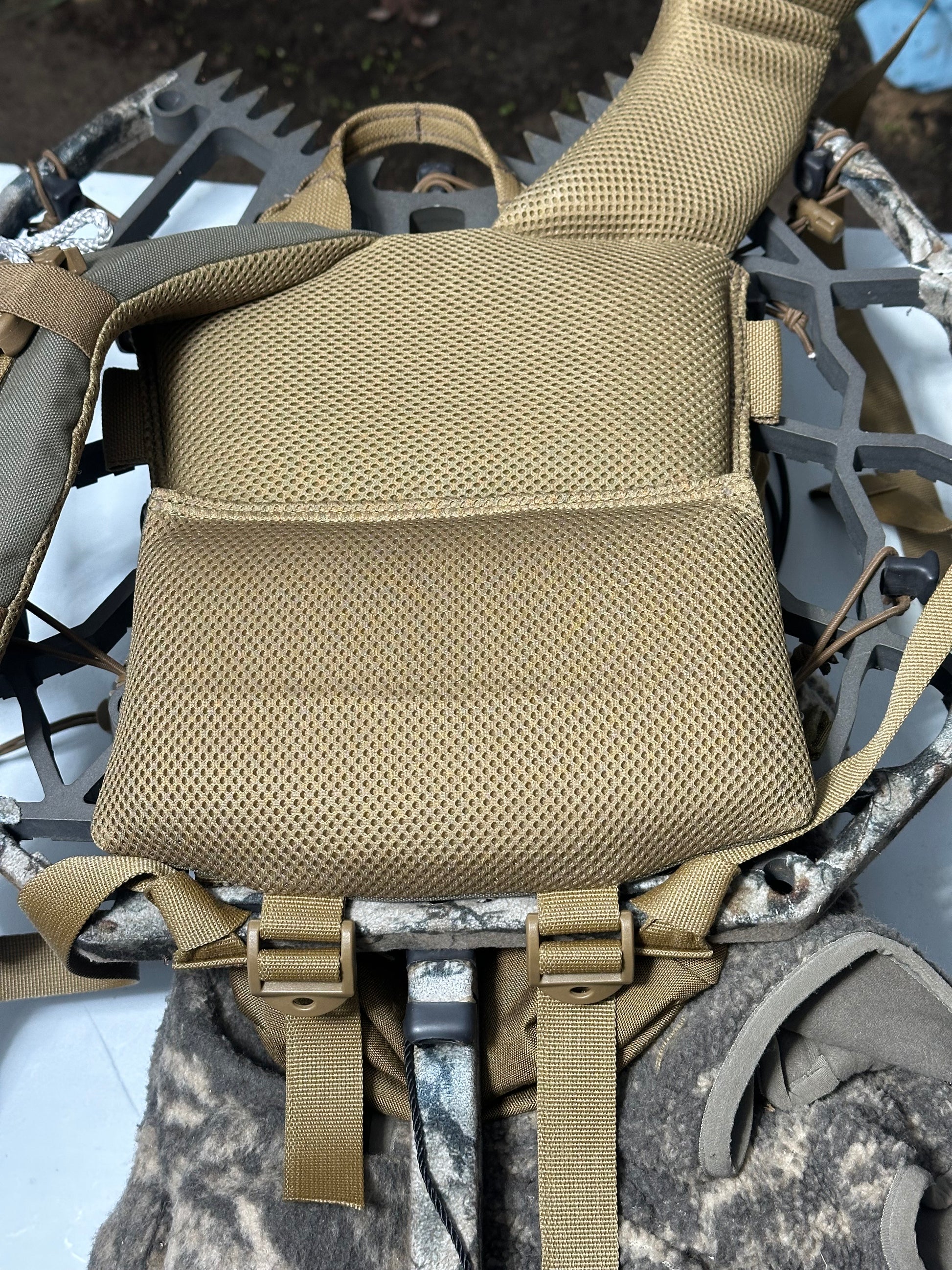 Please be aware that the attachment straps can get rubbed through on sharp edges of tree stands and platforms. Highly suggest using stealth strips or similar anywhere an attachment strap will sit.